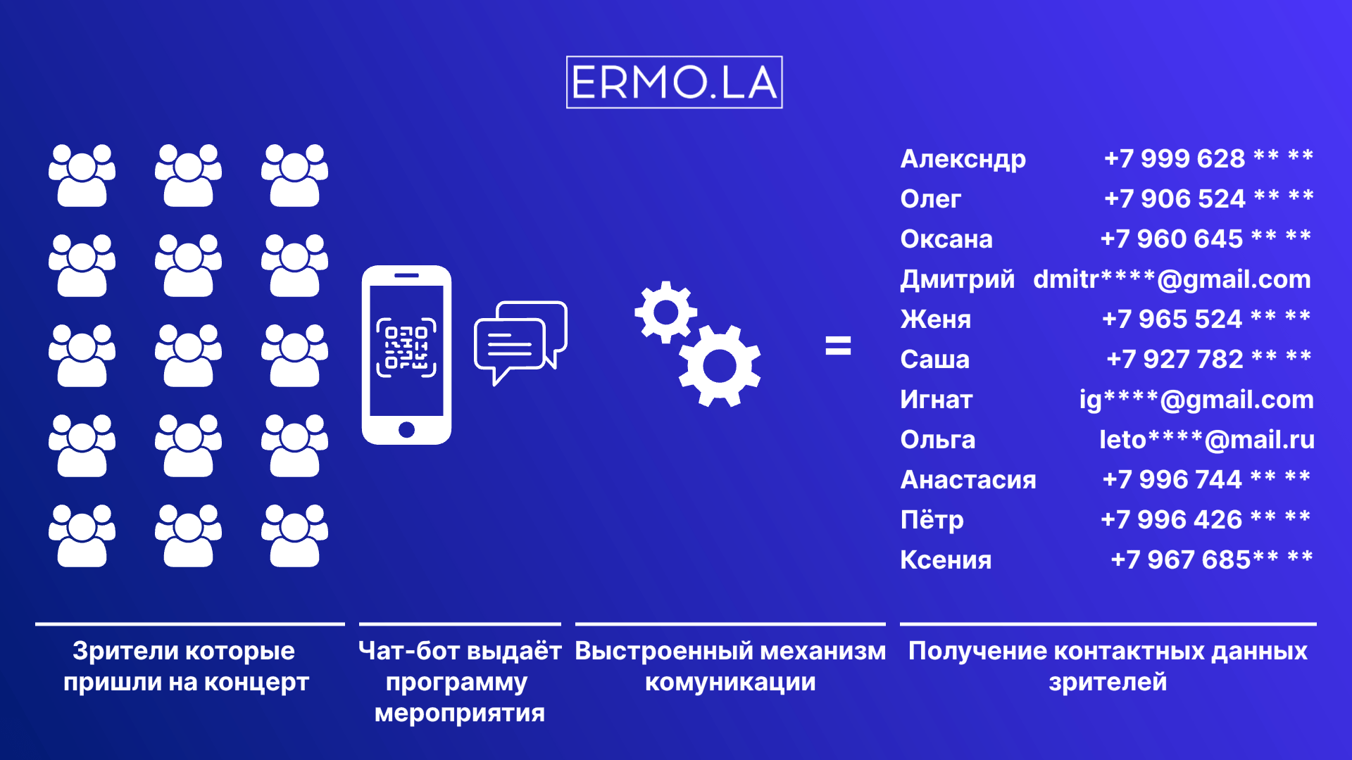 Мы с командой ERMOLA-IT провели стратегическую сессию и придумали решение, которое позволит делать сбор контактных данных прямо во время мероприятия через чат-бота.